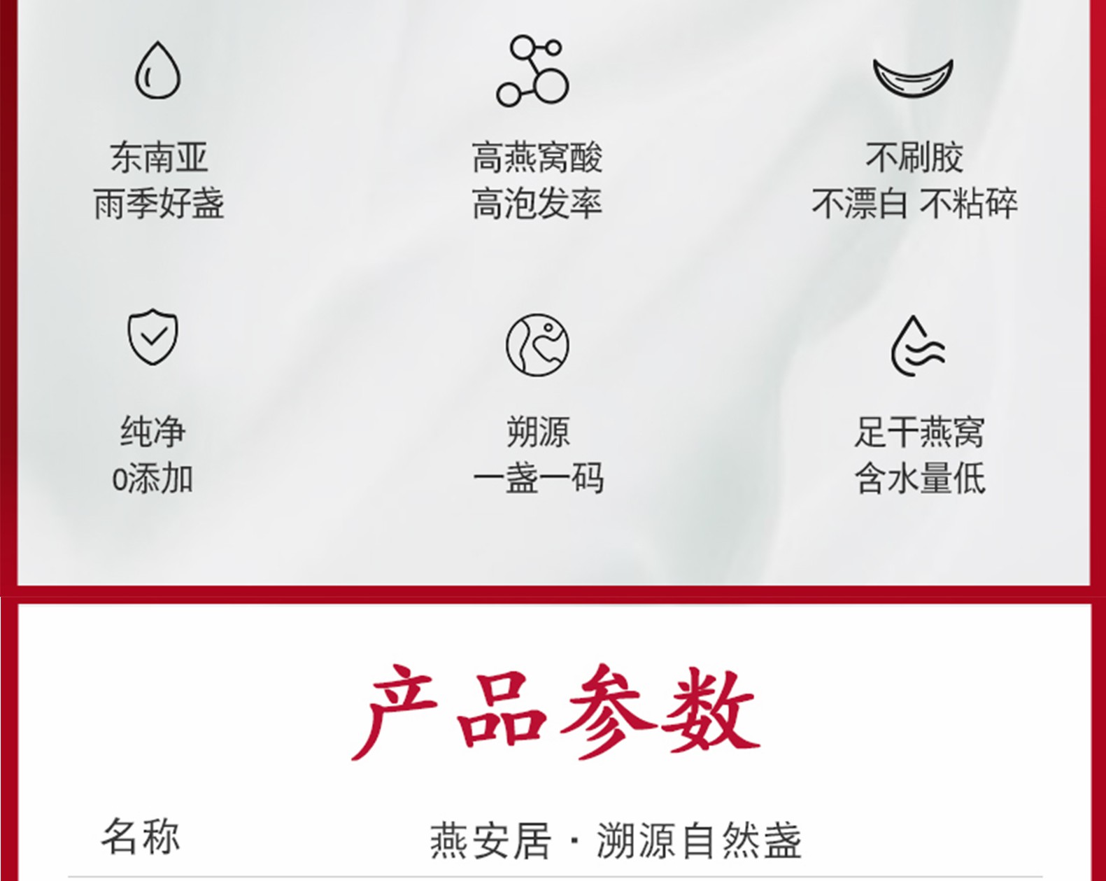 尊享五星禮遇,用臻品贈貴人!嚴(yán)選東南亞溯源燕盞,盞形自然,底座小,干凈度高,泡發(fā)率好;與海關(guān)技術(shù)中心合作,二次檢測,品質(zhì)更高,原生態(tài)零添加。